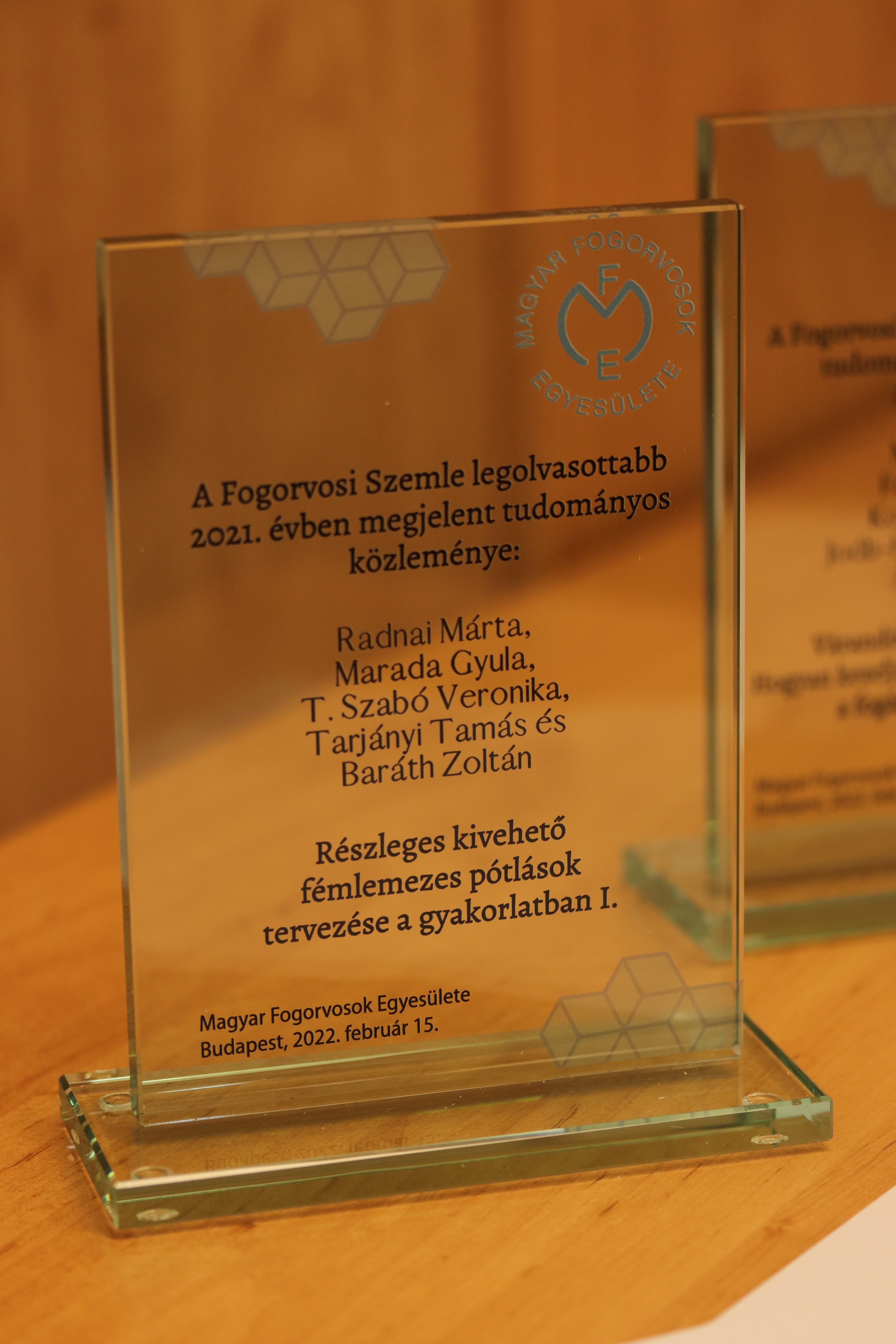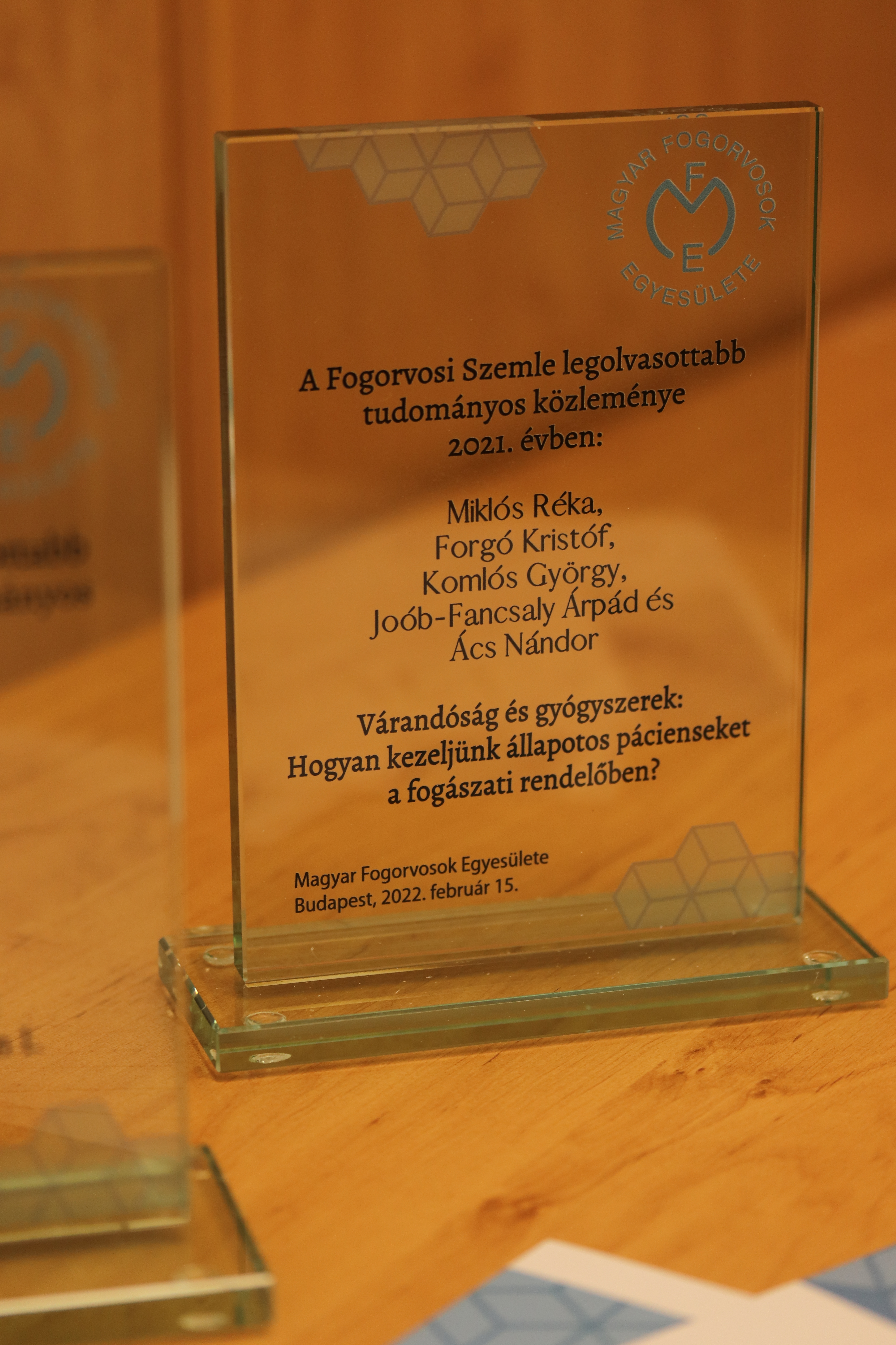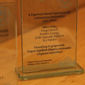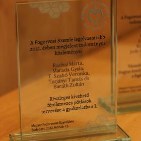 A Fogorvosi Szemle legolvasottabb, 2021-ben megjelent közleményének járó díjat
