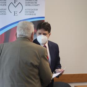 A közönség számára nyilvános eseményen Prof. Hermann Péter főszerkesztő köszöntötte a jelen, 2022. márciusi lapszám tematikus mellékletének két határon túli magyar társszerkesztőjét. Vendégünk volt Budapesten Prof. Székely Melinda és Prof. Matekovits György a Marosvásárhelyi és Temesvári Egyetemek Fogorvostudományi Karairól.